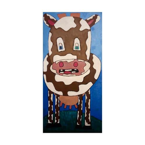 Art Bio Joseph Wheeler takes the opportunity to make art with Shallal when ever he can. He has exhibited in a number of Shallal exhibitions and sold work. He uses colour in a bold and confident way and often paints cows. Image